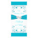 Diese romantische, weiße und türkisblaue Hochzeitskarte zeigt ein Paar miteinander verbundener Herzen über einem türkisfarbenen oder aquamarinen blauen Farbbandbild, das über die gesamte Kartenbreite verläuft. Es gibt türkisfarbene Blume und Weinreben über und unter dem Band auf einem weißen Hintergrund, der die Namen der Braut und des Bräutigams hat, und das Hochzeitstag in blau unter dem Band, mit "Unser Hochzeitsmenü" in blau über dem Band. Die Rückseite ist türkisfarben, die Blume in silberfarbenem Look verzieren die Menüdetails in Weiß. Wenn Sie weitere passende Artikel benötigen, schicken Sie Ihre Anfrage bitte an niteowlstudio@gmail.com oder nutzen Sie die Zazzle-Chat-Funktion, um die Touch zu erhalten.