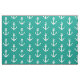 Türkisblaue und weiße Ankertextilien. Anpassbare Hintergrundfarbe. Ideal für DIY Projekte, Kleidung, Tischwäsche und vieles mehr. Meeresthema mit Bootanker-Druck. Ideal für den Versand / Segeldesign.
