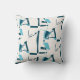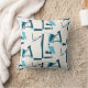 Türkisfarbene Aqua Twirling Lines Print auf Off-Wh Kissen