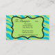 Türkisfarbene Aquamarine, rosa und grüne Zebra & G Visitenkarte