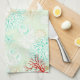 Türkisfarbene aquamarine Seesellkoralle im Strands Geschirrtuch