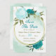 Schöne Save the Date Karte mit türkisfarbenen und hellblauen Blumen und grünen Blätter Die goldenen Glitzer Details werden simuliert. FÜR WEITERE PRODUKTE klicken Sie auf die Sammlung oben oder kontaktieren Sie mich