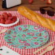 Stilvolle böhmische Blume Folklorekunst Muster türkis blauen Blumen, stellen Sie diesen Teller unter den kleineren Teller mit Ihren Namen!!