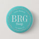 Feiner botanischer Rundrahmen mit individuell anpassbarem Bio handgefertigten Text für Ihre Slogan- oder Tagelinie, Monogramm-Initialen oder kurzen Markennamen, Produkttyp, in diesem Fall Seife und Standort, an dem das Geschäft begann. Weiße Schrift auf türkisfarbenem Hintergrund. Ideal für Mitarbeiter im Einzelhandel, auch als Werbemittel oder Geschenk für treue Kunden.