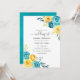 Türkisfarben und gelb blumengeschmückte Hochzeitseinladung mit eleganter handschriftlicher Typografie, die auf Ihre Veranstaltungsspezifikationen zugeschnitten ist.