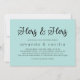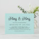Robin egg blue hers & hers Polterabend mit einem schlichten Design mit sauberen Schriftart und einem niedlichen Drehbuch, das Hers & Hers über die hübsche Einladung schreibt, mit kleinen Herzen auf den h's dekoriert.