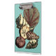 Türkisfarbene Muschel und Rote Koralle Klemmbrett
