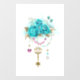 Türkisfarbene Rose mit Tasten Fensteraufkleber
