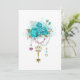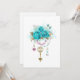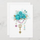 Der goldene alte Schlüssel mit trendigen türkisfarbenen Rose, die mit Blätter aus Weißgold, Rosa und Blau geschmückt sind. Modische Farbe. Türkisfarbene Rose. Weißes Gold. Blaue Krawatte.