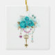 Der goldene alte Schlüssel mit trendigen türkisfarbenen Rose, die mit Blätter aus Weißgold, Rosa und Blau geschmückt sind. Modische Farbe. Türkisfarbene Rose. Weißes Gold. Blaue Krawatte.