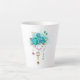 Der goldene alte Schlüssel mit trendigen türkisfarbenen Rose, die mit Blätter aus Weißgold, Rosa und Blau geschmückt sind. Modische Farbe. Türkisfarbene Rose. Weißes Gold. Blaue Krawatte.