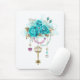 Der goldene alte Schlüssel mit trendigen türkisfarbenen Rose, die mit Blätter aus Weißgold, Rosa und Blau geschmückt sind. Modische Farbe. Türkisfarbene Rose. Weißes Gold. Blaue Krawatte.