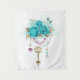 Der goldene alte Schlüssel mit trendigen türkisfarbenen Rose, die mit Blätter aus Weißgold, Rosa und Blau geschmückt sind. Modische Farbe. Türkisfarbene Rose. Weißes Gold. Blaue Krawatte.