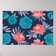 Türkisfarbene Rose und korallenfarbene Blume mit p Poster