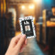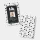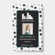 Vertikales Mitarbeiter-ID-Abzeichen für ein mit Ihrem Firmenlogo personalisiertes Heimtierpflege-Unternehmen, Foto, Name und Titel Ihres Mitarbeiters, Pronomen und Abzeichen-Nummer auf einem schwarz-weißen Pfotenmuster-Hintergrund.
