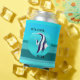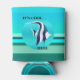 Kann kühler mit einem niedlichen Fisch auf einem gestreiften aquamarin türkisfarbenen Hintergrund.