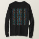 Eine abstrakte Kombination von Formen und Linien in Türkisblau, aquamarin und Rost schafft ein vertikales Ziegelmuster mit Zickzacklinien in Reihen, die an den mediterranen und den amerikanischen/südwestlichen Stil erinnern. Bilder hier auf einem schwarzen, langärmeligen T - Shirt, mit anderen Stilen und Farben verfügbar. Es ist ein helles und elegantes Aussehen, das Ihre lässige und alltägliche Kleidung (sei es beim Zuhause, bei Freunden, beim Sport oder beim Rennen um die Stadt, um sich zu kümmern) verbessern kann. Da das Shirt-Design eine künstlerische, anspruchsvolle Qualität hat und einen individualisierten persönlichen Stil projiziert, gibt es ein Gefühl, "zusammengesetzt" zu werden, was besonders motivierend für diejenigen sein kann, die fernarbeiten und/oder viel Zeit beim Zuhause verbringen.