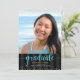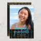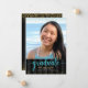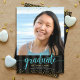 Seien Sie stolz, freuen Sie sich und zeigen Sie diesen Meilenstein Ihres Lieblingsgrades! Versenden Sie dieses atemberaubende, moderne, funkelnd türkisblaue Typografie-Skript vor einem schwarz gestreiften Hintergrund mit goldenen Punkten, personalisierte Foto-Ankündigung für eine Veranstaltung zu erinnern. Personalisieren Sie den benutzerdefinierten Text mit dem Namen, der Schule und dem Unterrichtsjahr Ihres Abschlusses. In dieser trendigen und stilvollen Kollektion sind auch Matching-Einladungen, Dankeschön-Karten, Cap Toppers, Servietten, Teller und andere Abschluss-Goodies erhältlich. Garantiert, um ihrem besondere Anlass stilvollen Spaß zu verleihen! Geben Sie einfach den Namen, die Schule und das Unterrichtsjahr Ihres Abschlusses ein, fügen Sie ihr Foto hinzu, und Sie können diese Ankündigung des Abschlusses ganz einfach personalisieren. Bitte schicken Sie mir eine Nachricht mit Fragen oder Wünschen.