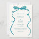 Whimsikale und moderne Hochzeitseinladungskarte mit handgezeichneter Darstellung des Bogens als Rahmen in türkisfarbener Farbe. Passen Sie diese Einladung an, indem Sie Ihre eigenen Hochzeitsinformationen hinzufügen.