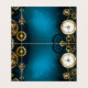 Türkis, strukturiert, Steampunk-Hintergrund mit Messing und Goldgräben, ein silberner Schlüssel und die Uhr. Steampunkstil.