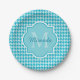Türkisfarbenes Chic Monogram Hahnentrittmuster mit Pappteller
