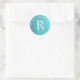 Türkisfarbenes Imitat, in Monogramm umrahmt Runder Aufkleber