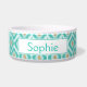 Stilvolles Rautenmuster in aquamarin türkisfarbenem und beigefarbenem Farbschema, zusammen mit einem personalisierbaren Textbereich für den Namen eines Tieres oder anderen benutzerdefinierten Text wie z.B. "Dinner" oder "Wasser".