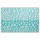 Nahtlose, einfache, weiße Leoparden-Muster auf türkisfarbenem Hintergrund.