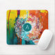 Dieses farbenfrohe Mousepad fügt jedem Schreibtisch eine Touch Farbe hinzu. Der Hintergrund ist ein abstraktes Bild in Türkis, Orange und Gelb, und oben ist ein Mandala-Design mit weißen Blättern angebracht. Im Zentrum der Mandala befindet sich ein modernes Monogramm, das in einem entsprechend türkisfarbenen Kreis beginnt.