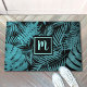 Türkisfarbenes monogramm tropisches Palmmuster, mo Fußmatte