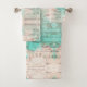 Schönes antikes türkisfarbenes Blumenhandtuch-Set