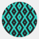 Türkisfarbenes und schwarzes Rautenmuster Runder Aufkleber