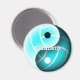 Dieser Yin- und Yang-Magnet zeichnet sich durch halbtransparente schwarz-weiße Yin- und Yangelemente aus, die einen minimalistischen Volleyball (nur durch seine Naht in Weiß dargestellt) und einen türkisfarbenen Hintergrund zeigen - mit ihrem Namen - durch katz_d_zynes