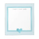 Der türkisfarbene Rahmen und das Herz überragen den türkisblauen Hintergrund. Personalisieren Sie das Notizblock mit Ihrem eigenen Namen oder Text.