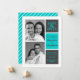 Türkis, Holzkohle grau und weiß moderne minimalistische Farbblock Foto Hochzeit speichern das Datum Ankündigung. Diese Bilder in dieser Einladung sind Set zu einem Schwarz-Weiß-Filter. Wenn Sie also ein Farbbild hochladen, wird es in Schwarz/Weiß geändert. Sie können den Foto-Filter im Zazzle Design-Tool entfernen oder einen anderen Filter ausprobieren, wenn Sie möchten. Elegantes Türkis oder Rotwein's Ei Blau, Grau und Weiß moderne Hochzeitseinladung Design. Zwei Farben, Farbe Block Typografie Stil des Designs. Alle Farben können in diesem Design geändert werden. Es gibt zwei Fotos, um Ihre eigene Verlobung Fotos zu ändern.