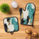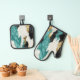 Türkisgrüne goldfarbene Schwarz-weiße Kuhide Ofenhandschuh & Topflappen-Set