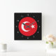 Square Wall Clock with flag of the Republic of Turkey, red flag with s white sun, moon and star
