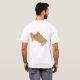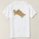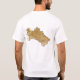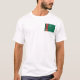 Die Front dieses T - Shirt trägt eine kleine Turkmen Flagge mit seinem vertrauten weißen Halbmond und Sterne auf einem grünen Hintergrund mit dekorativem vertikalem Band in Richtung zur Hebemaschine, während die Rückseite eine Entlastungskarte von Turkmenistan anzeigt. Verfügbar auf T - Shirts, Sweatshirts, Polo, Langhülsen und mehr.