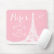 Diese schicke rosa Mausunterlage kennzeichnet eine weiße Eiffelturmgraphik mit "Paris", das in modernes Skript geschrieben wird. Eine Monogramminitiale, damit Sie sind gerahmt durch eine weiße extravagante Rolle personifizieren.