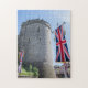 Ein schönes Foto eines Turms von Windsor Castle und eine riesige Flagge von Union Jack auf einem Puzzle.