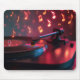 Vinyl Datensatz Spinnen auf einer Turntable, umgeben von leuchtenden roten musikalischen Noten, die ein Gefühl von Rhythmus und Melodie vermitteln