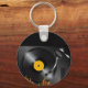 Dieses Design ist eine Turntable. Die Turntable ist schwarz und ein Album darauf bereit zu spielen. Dieses Design der Turntable sieht auf diesem Schlüsselanhänger großartig aus