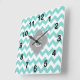 Turq/Aqua Zickzack-Graues Quatrefolienmonogramm Quadratische Wanduhr