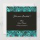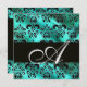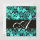 TURQUASE GREEN SILK DAMASK CLOTH MONOGRAMM, Gold Einladung