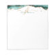 Personalisiert elegantes 5.5x6" Notepad mit türkisfarbenem, aquamarinem Agate Geode und Marmor mit Imitaten goldenem Glitzer und extravaganten handgeschriebenen Schriftzeichen Monogramm Initialen in Gold und Namen in Türkis auf weißem Papier. ÄNDERUNGEN: Der Textstil, die Farbe, die Größe und die Platzierung des Schriftartes können in EDIT für ein benutzerdefiniertes Aussehen geändert werden. HILFE: Für Hilfe bei Designänderungen oder Personalisierungen, Farbänderungen, der Übertragung des Designs auf ein anderes Produkt oder der Koordination von Gegenständen, wenden Sie sich bitte an den Designer, bevor Sie über den Zazzle Chat MESSAGE Tab bestellen oder per E-Mail an makeitaboutyoustore@gmail.com.