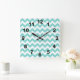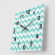 Turquoise Aqua White Chevron Zig Zag Pattern Quadratische Wanduhr