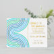 Unique and trendy yellow gold foil congratulations graduate announcement and celebration party invitation card, with a retro vintage aqua turquoise, blue, mint green and violet colored wavy stripes background. With room to customize or personalize with a photo, the name of the graduate, class graduation year, high school, future college or university name, and celebration party event information. Let the family, friends and neighbors know there is a happy graduate ready to conquer the world, and invite everybody to come celebrate the happy event with you!