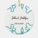 Turquoise blue wedding couple name date flstylish keramik ornament
