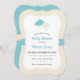 Niedliche Baby Dusche Einladung mit Liebe Wolken in einem extravaganten Rahmen, auf einem weichen beigen Hintergrund mit türkisfarbenem Band. Ideal für ein Junge oder ein geschlechtsneutrales Baby Duwer Party, oder auch für ein Baby Sprinkle.