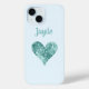 Das funkelnd türkisfarbene Kristallherz auf türkisfarbenem Hintergrund. Kann mit einem Namen personalisiert werden.
